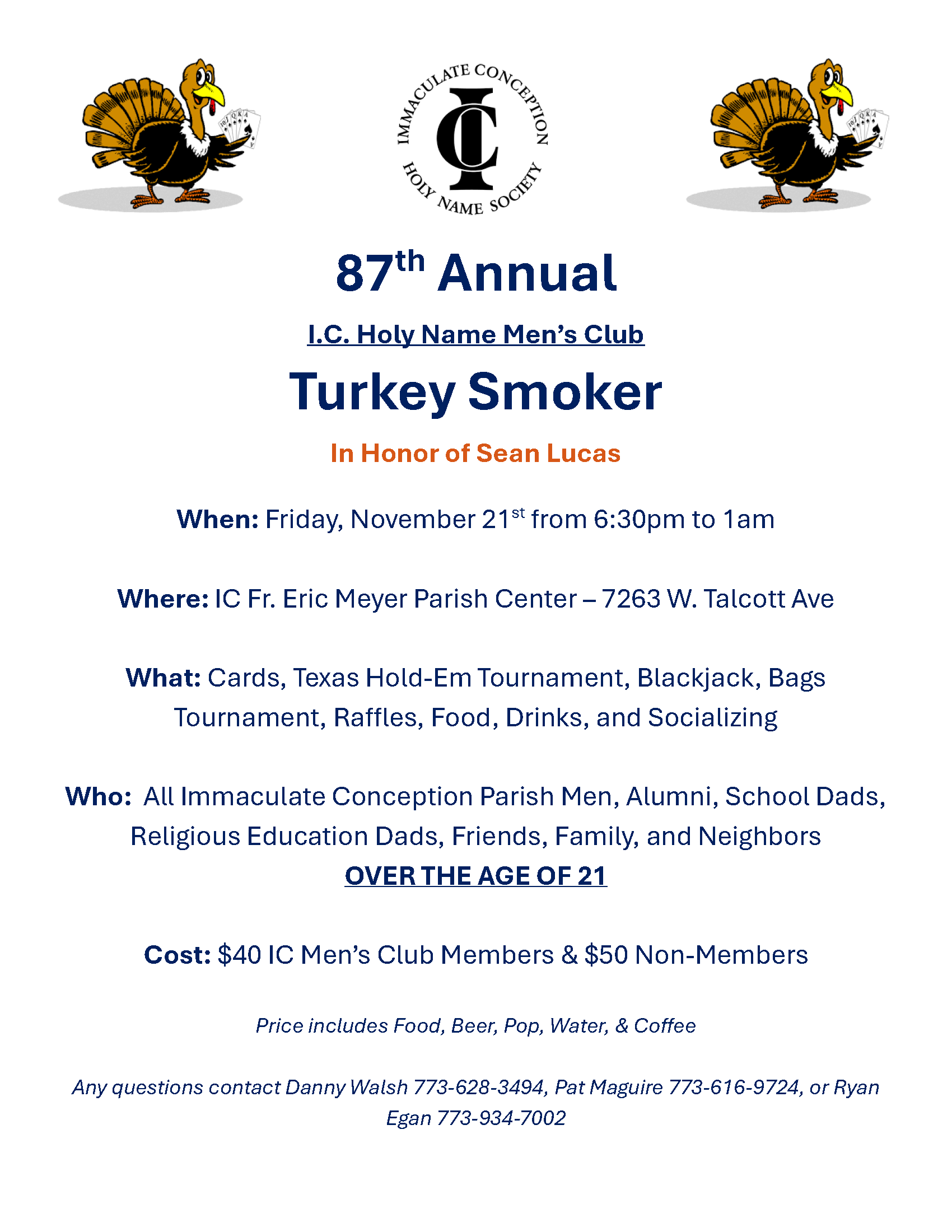 Join our Holy Name Men's Club on Fri., Nov. 21st @ 6:30 P.M. as they host their 87th Annual Turkey Smoker in our Parish Center. Please click here...