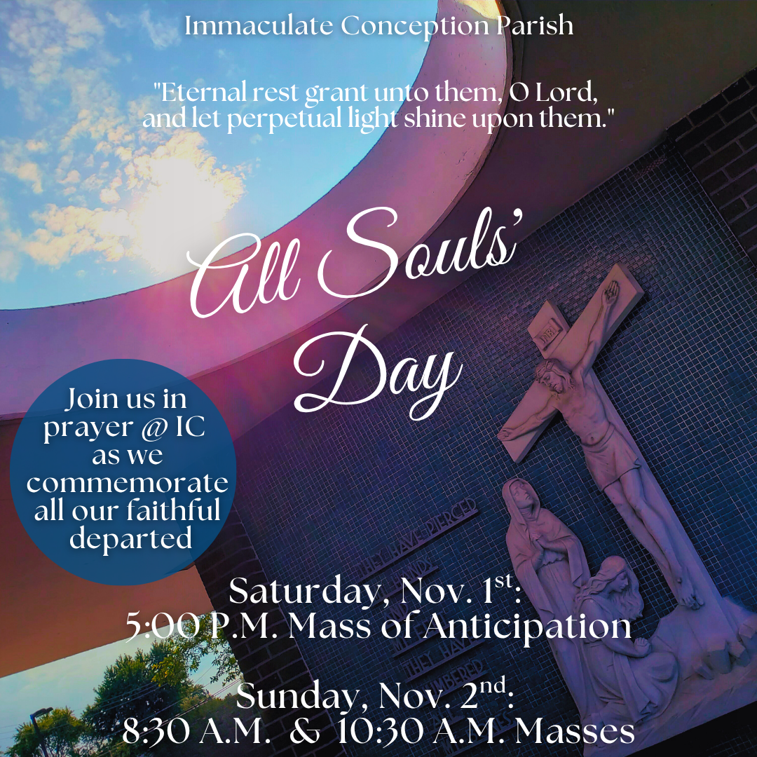 read MoreJoin us for Mass @ 5:00 P.M. (Sat.), 8:30 A.M. & 10:30 A.M. (Sun.) Nov. 1st & 2nd as we commemorate all the faithful departed on All Souls' Day. All are welcome!