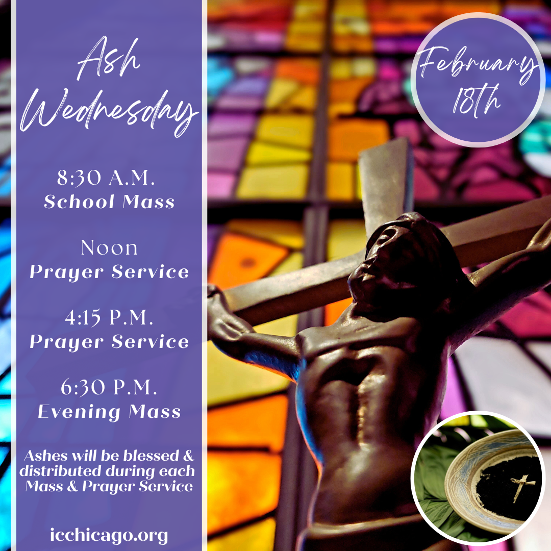 Our blessing & distribution of ashes will take place during the following times on Ash Wednesday, Feb. 18th: 8:30 A.M. & 6:30 P.M. (Mass) and Noon & 4:15 P.M. (Prayer Service)...