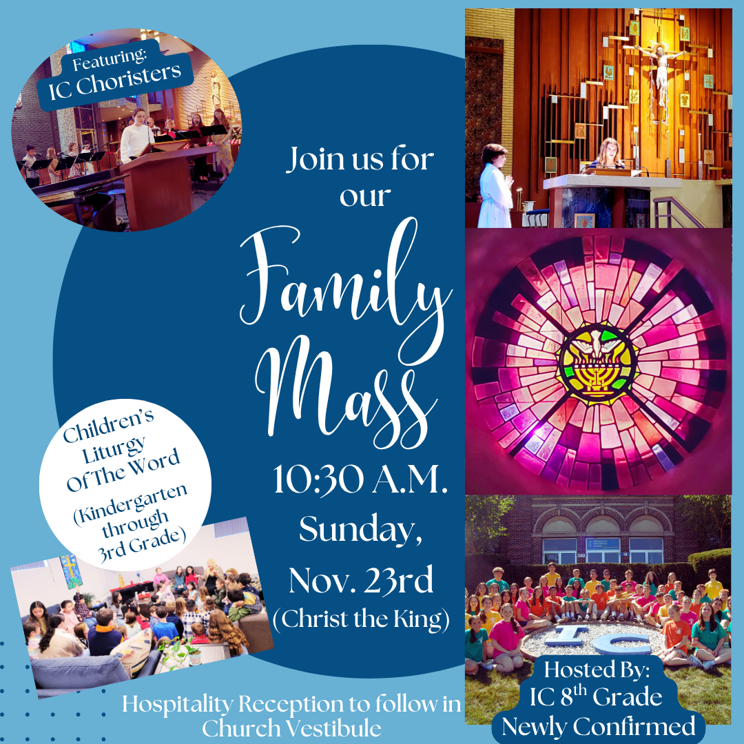 Join us on Sun., Nov.23rd for our monthly Family Mass @ 10:30 A.M. hosted by our IC 8th Grade Newly Confirmed. A hospitality reception will be offered afterward.