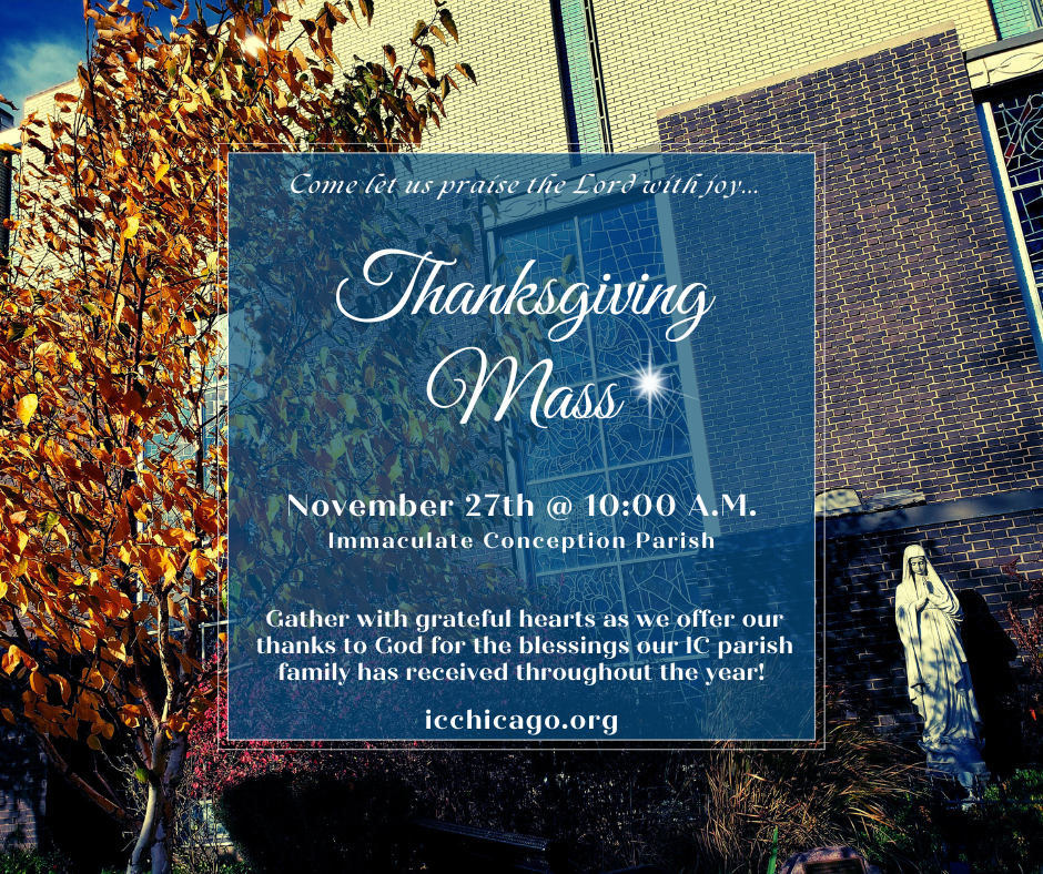 Join us @ our 10:00 A.M. Mass on Thurs., Nov. 27th as we gather to offer our gratitude to God for the many blessings that we have received as a parish family this past year...